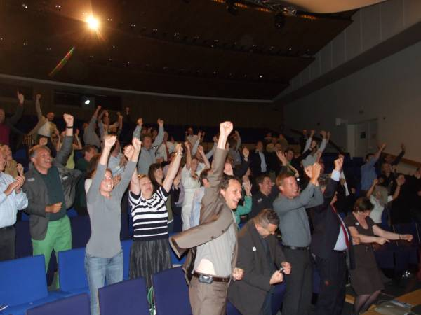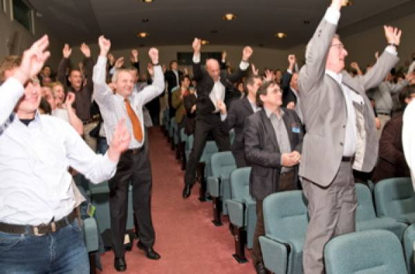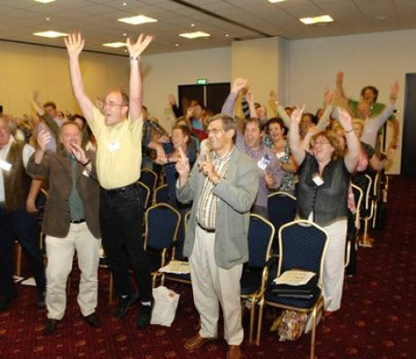 Hierbij blijft Harry niet veilig op het podium. Hij stapt met de micro naar de mensen toe. Want een goeie moderator wilt de emotie voelen en vooral ook zien in de ogen van de deelnemers.